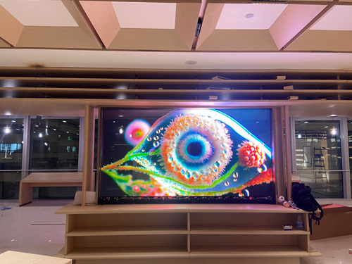 4樓展廳配置了當前先進的LED全息透明屏,以超薄高清之姿,攜高亮高透之魅,為你開啟全新視覺紀元。無需龍骨,渾然一體,裸眼3D效果讓畫面躍然眼前,帶您感受科技與現實的完美融合,暢享前所未有的沉浸式體驗。